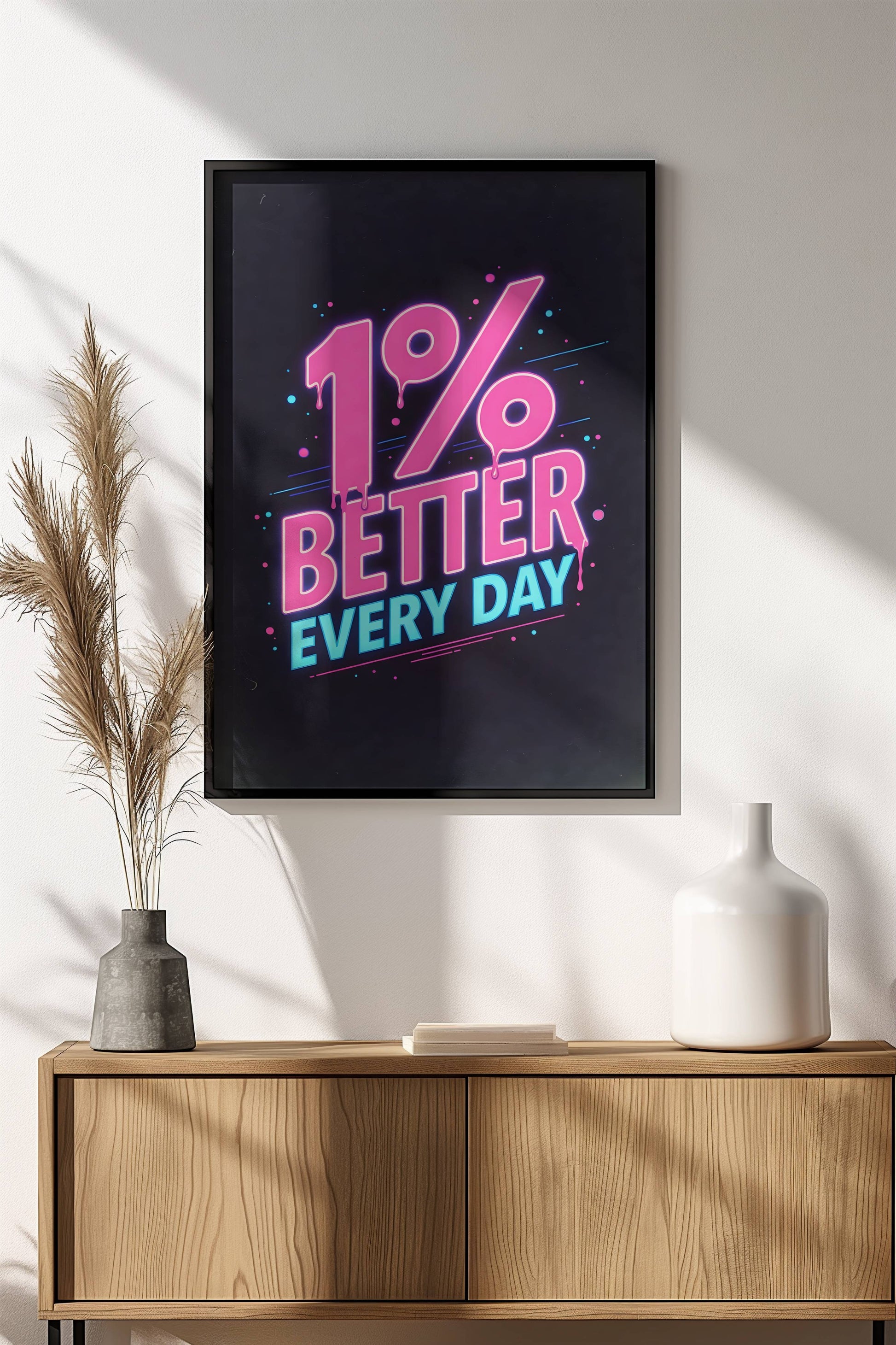 1% Better Every Day Poster – Retro Neon Motivation Art