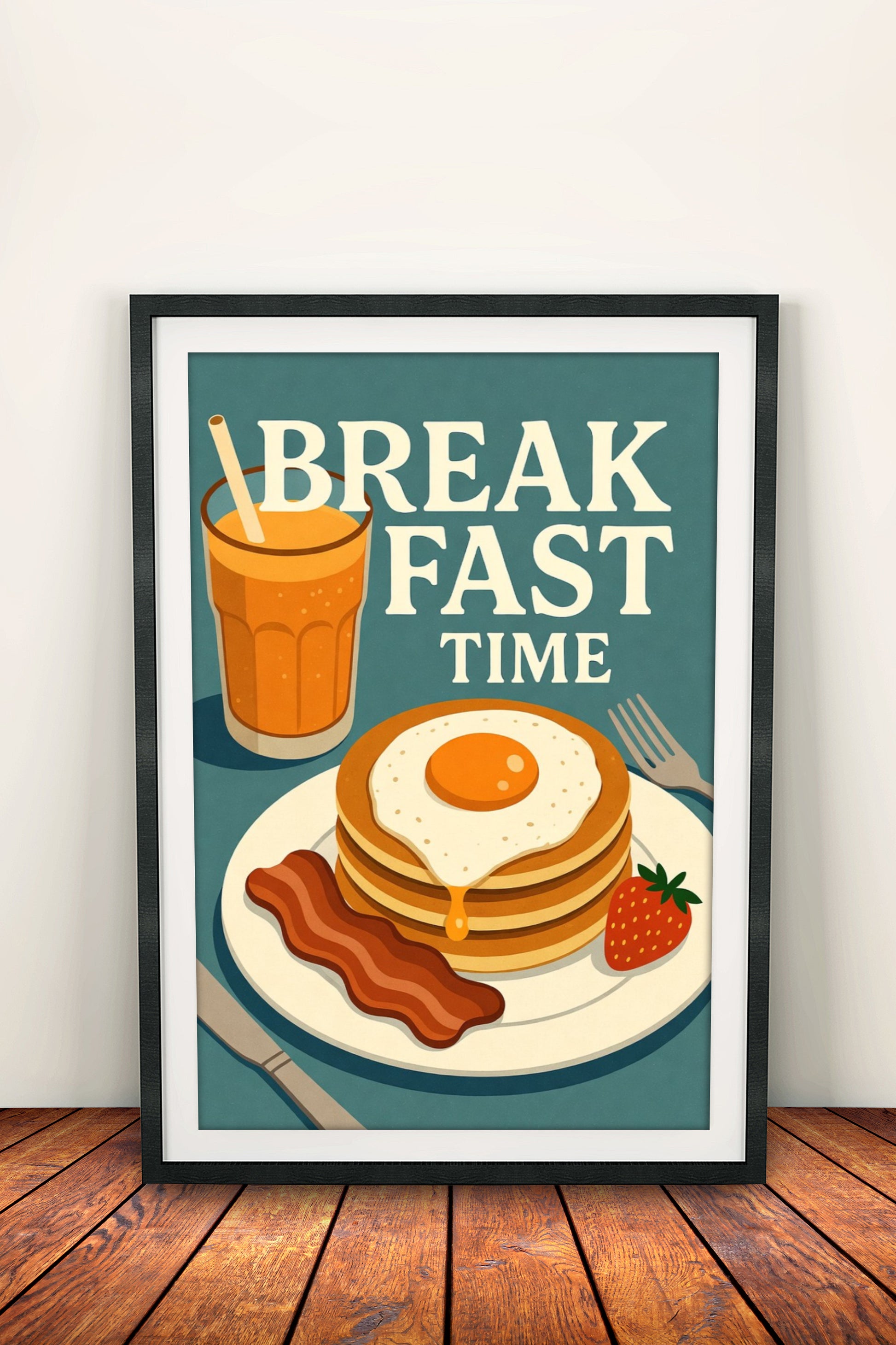 Breakfast Time Pancakes & OJ - Retro Vintage Kitchen Poster