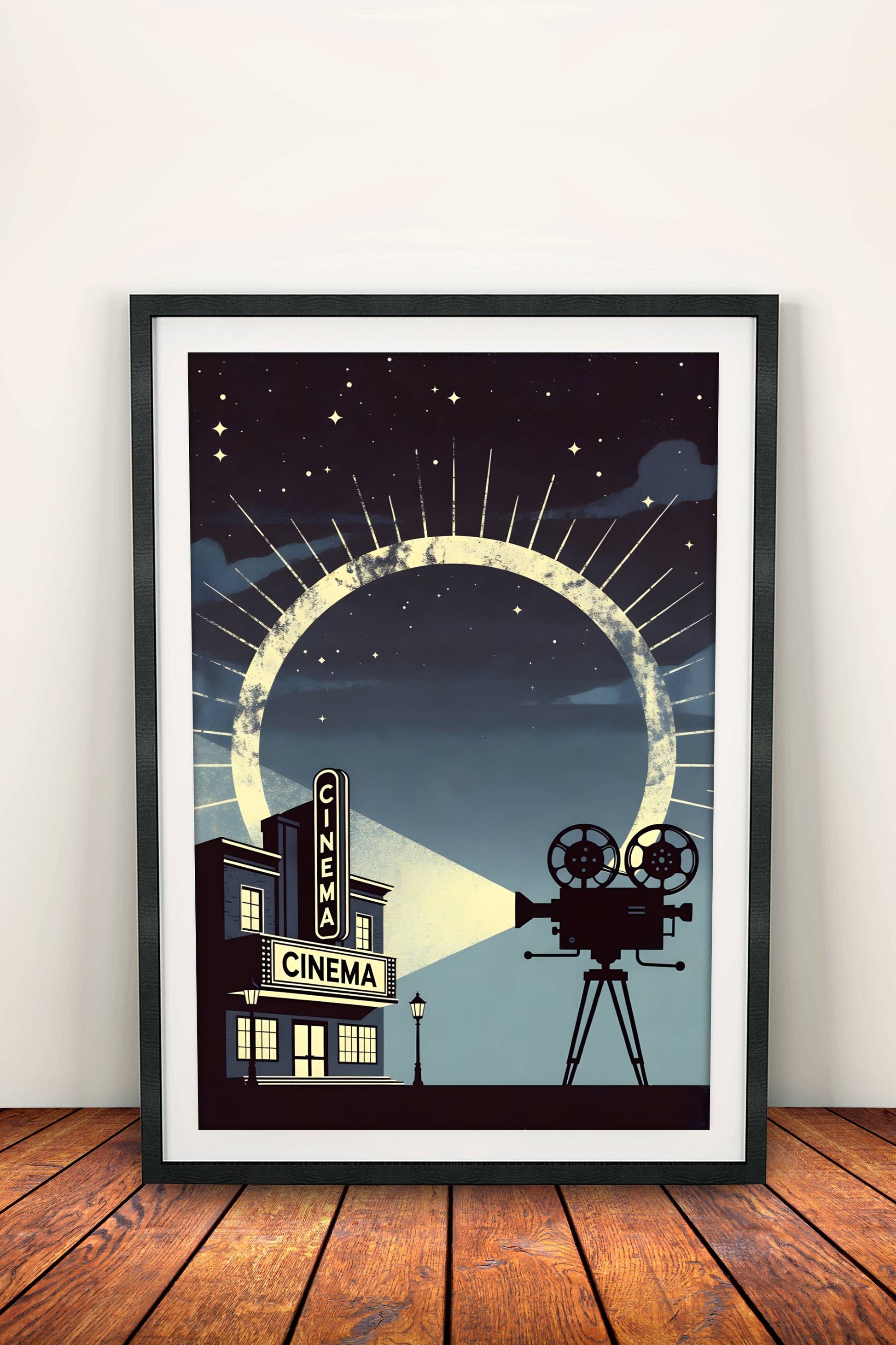 Cinema Night Sky Poster – Retro Movie Magic Art