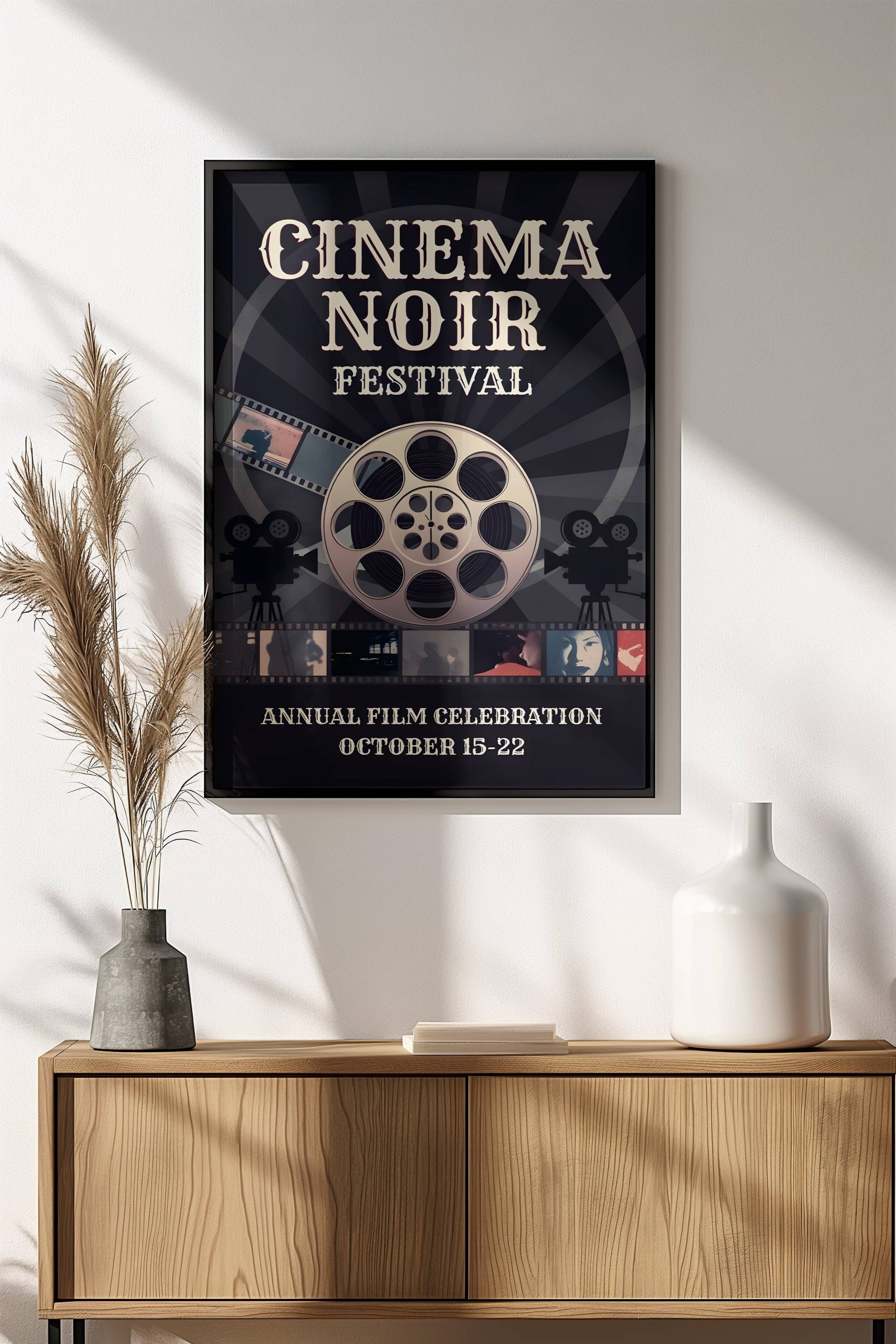 Cinema Noir Festival Poster – Retro Film Noir Celebration Art