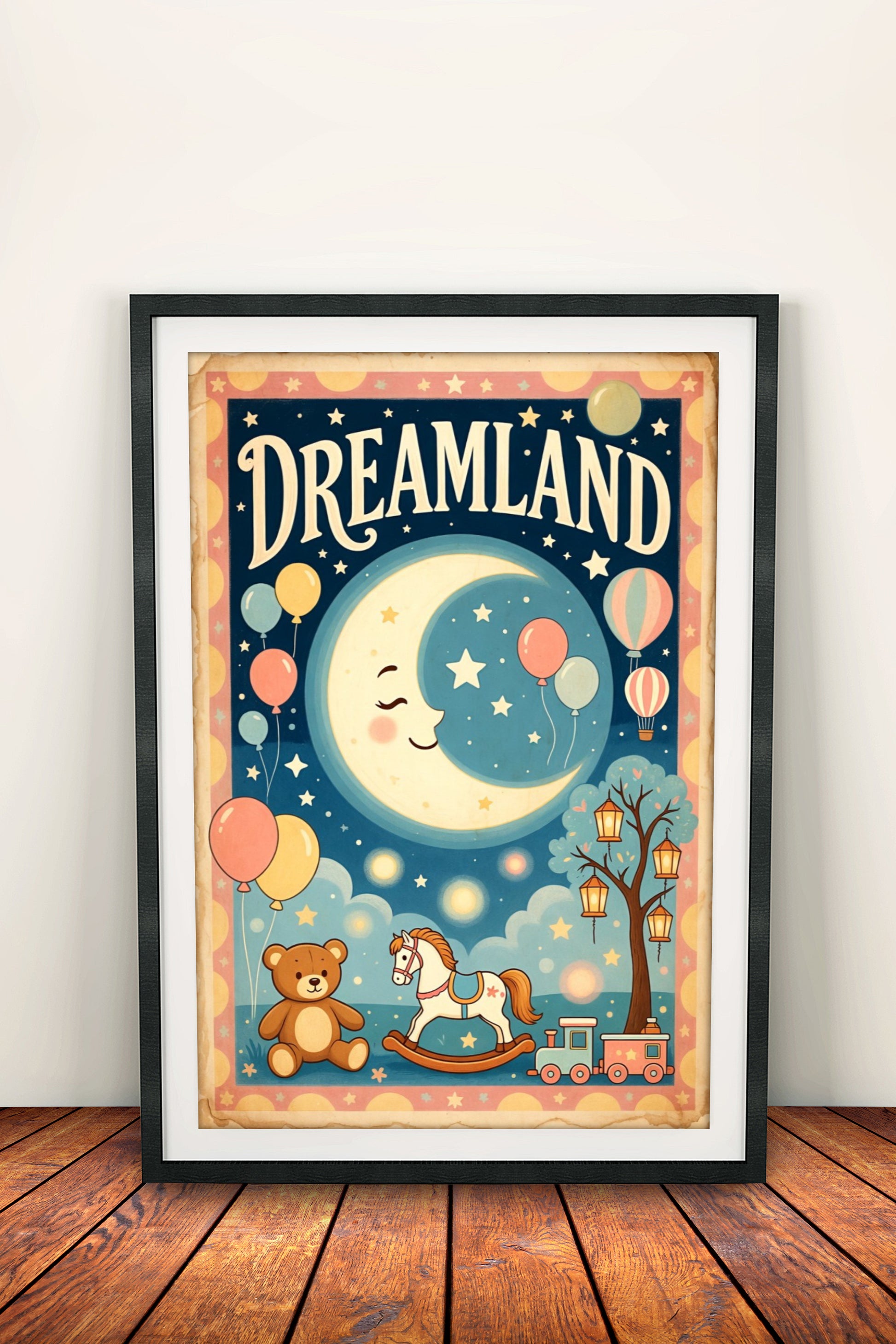 Dreamland Nursery - Retro Vintage Children's Night Poster